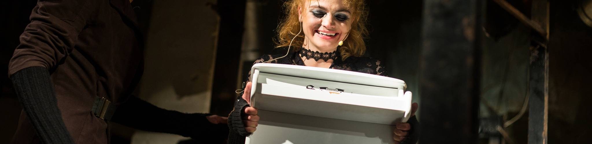 The script of „Hamlet” is compiled of parts of the Shakespearean tragedy translated by contemporary Ukrainian writer, poet and translator Yuri Andrukhovych. It reflects modern reality and is spiced with colloquial language, vulgarisms and phraseological units, addressing the present-day audience.